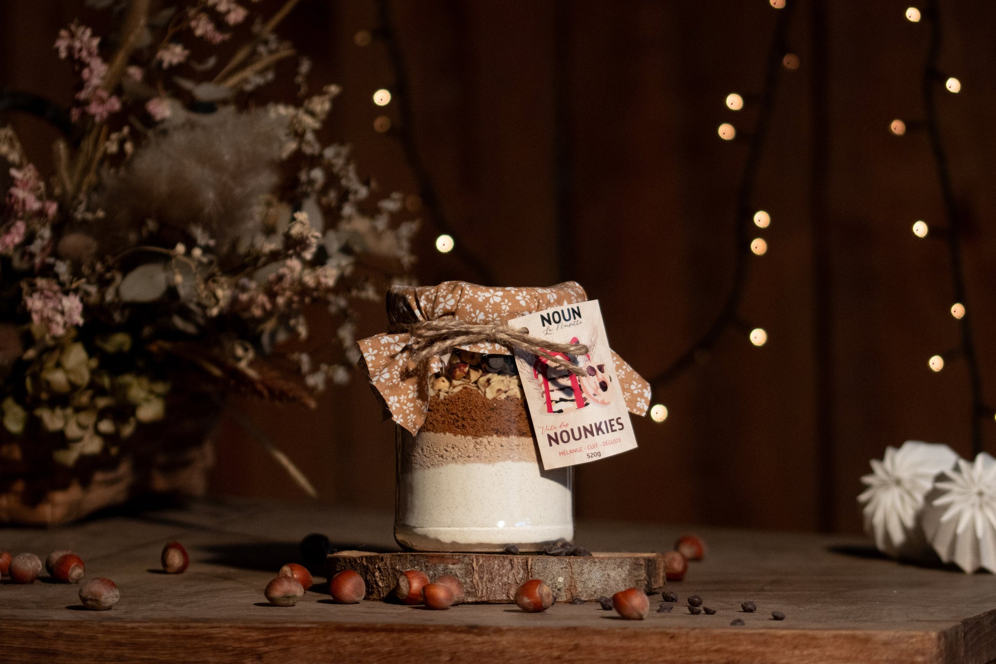 Mais qu'est ce que c'est que cette histoire tu te demandes. Dans ce bocal, il y a le mélange parfait pour réaliser facilement et rapidement des Cookies à la Noun, c'est à dire Full noisette, en deux trois mouvements!